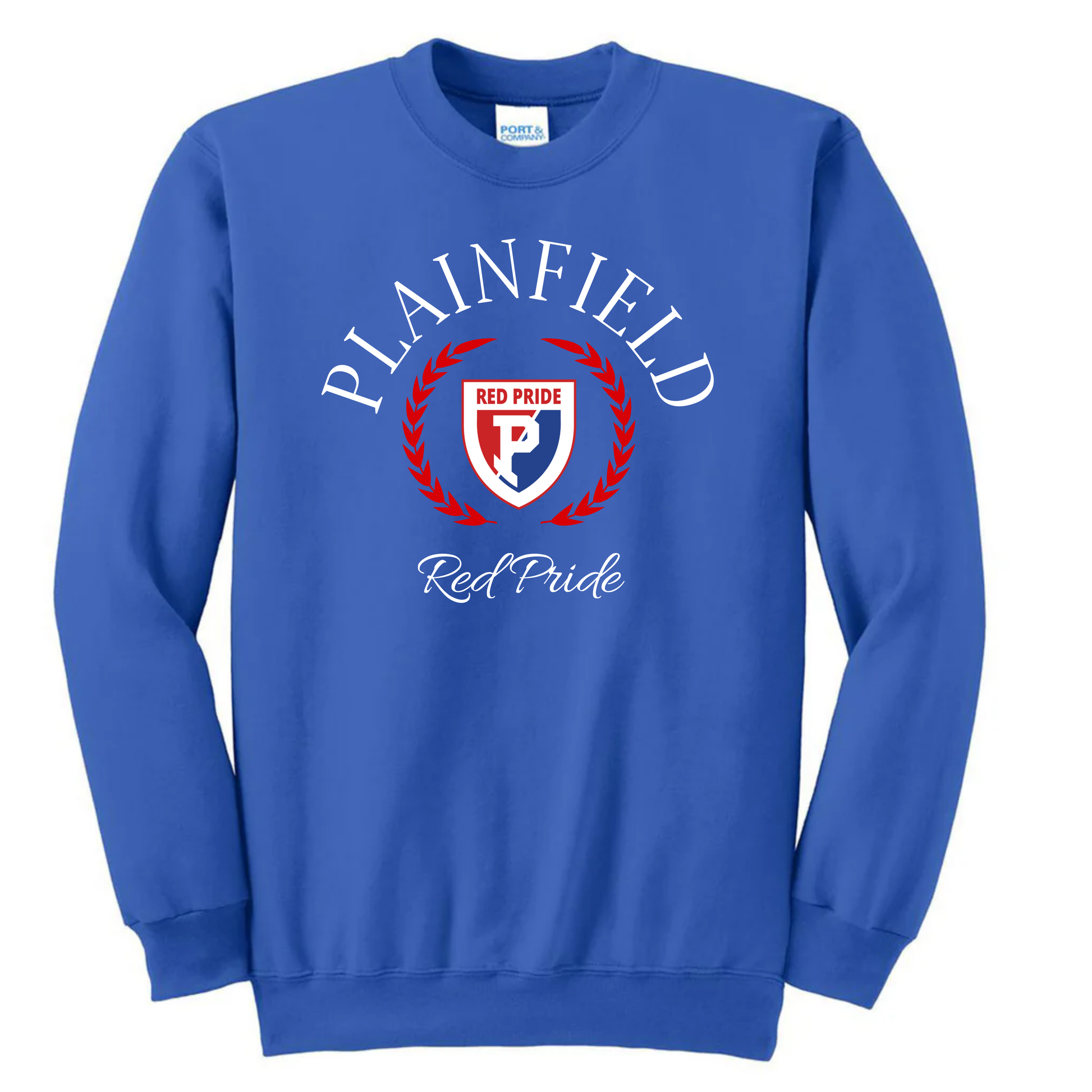 Adult & Youth (Port & Company): Midweight crewneck sweatshirt, fleece lined, runs slightly oversized. 50/50 cotton poly blend