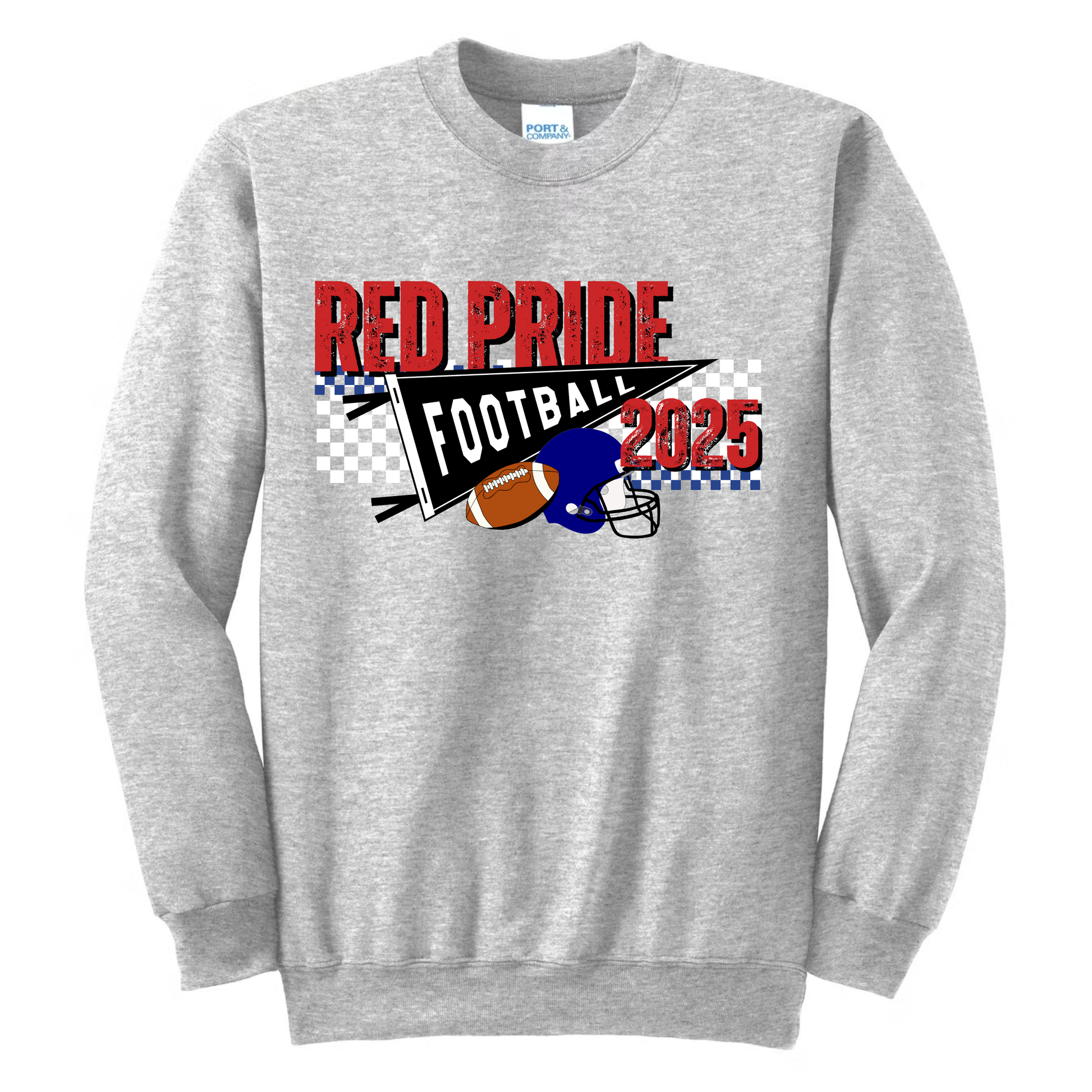 Available in adult and youth sizes on a Port & Company (midweight, fleece lined) crewneck. Sizes run slightly oversized.